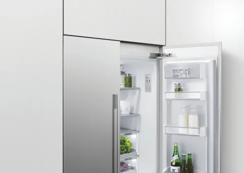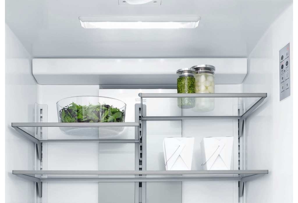 智能變頻全嵌式法式冰箱,有製冰功能,門片自由設計搭配居家裝潢,俐落設計,讓廚房變得更加優雅與細膩,更符合您时尚的品味。一台結合人工智能ActiveSmart系統,隨時掌控制冷温度強弱,用最節能的方式獲得最佳保鮮溫度。