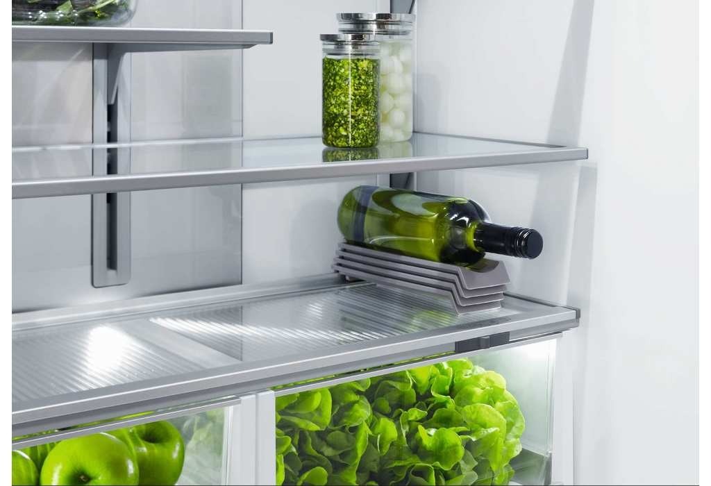 蔬菜和水果透過分隔盒分開存放,此時便能利用這個濕度調節鈕來調整盒內的小氣候,蔬菜類用以減少水分流失,防止葉菜枯黃,水果類維持它新鮮保濕的溫濕度,讓存放時間更長。