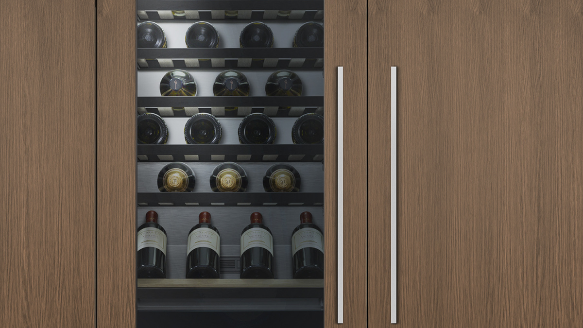 嵌入式面板讓您能夠自由地將酒櫃中的藏酒與立式冰箱和冰櫃一起展示,或將其作為書房或活動室中的獨立展示品。