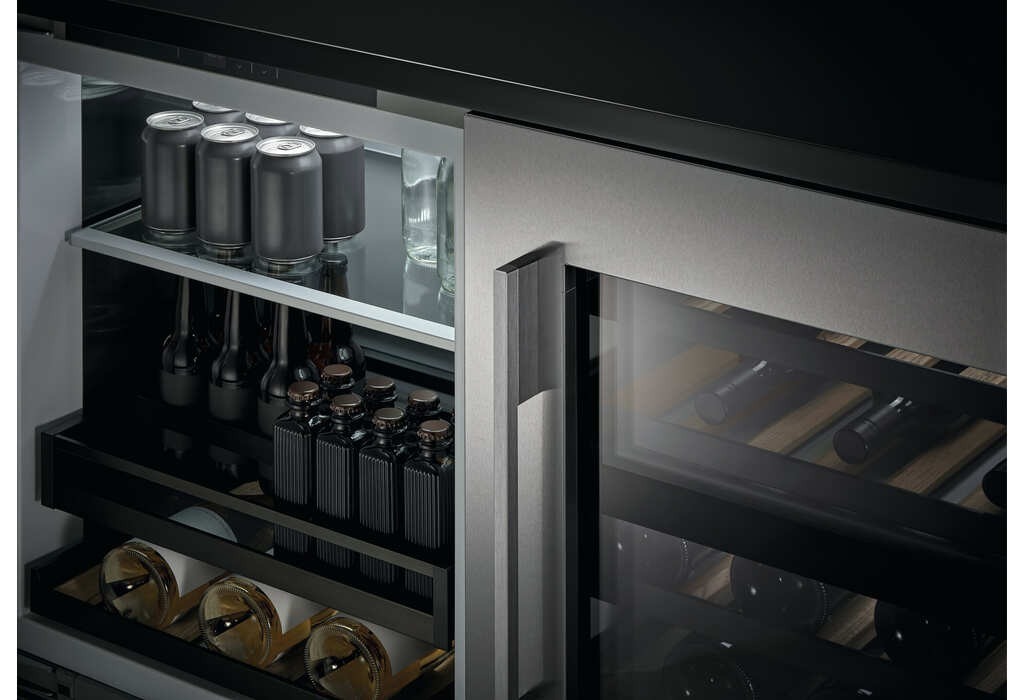 用於在各種空間提供冰鎮飲品,從廚房到家庭酒吧,從娛樂室到家庭影院。它小巧時尚,適合存放各種飲料,從罐裝飲料到瓶裝啤酒,或在定制的酒架上存放最多 7 瓶葡萄酒。將其與我們的台下式酒櫃完美搭配,打造好客主人的夢想設置。