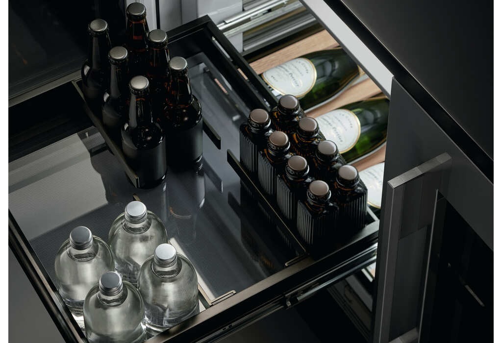 飲料中心設計用於存放各種飲料,從罐裝飲料到瓶裝啤酒,或在定制酒架上存放葡萄酒。全伸出型擱架讓您可以輕松挑選淡