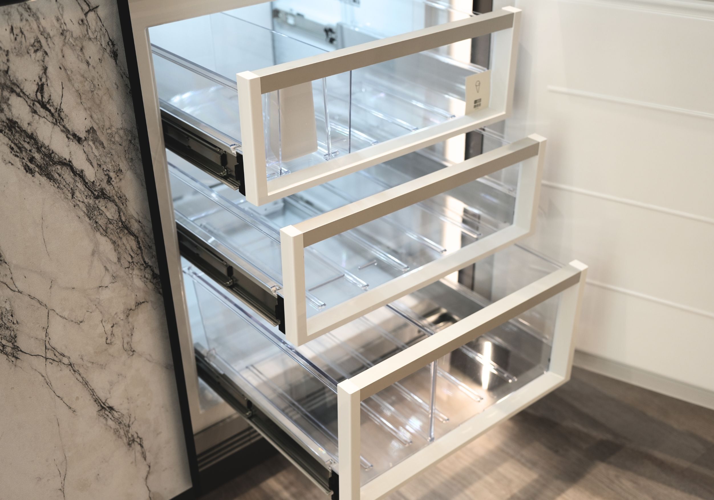 搭配一體成型三區冰箱,打造終極廚房解決方案——該型號具有三個獨立的食品區,將冷卻靈活性提升到一個新的水平。