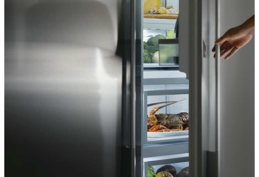 獨立安裝或與另一立式冰箱配對,實現真正的設計自由——此型號為右開門設計,內壁採用不鏽鋼材質。