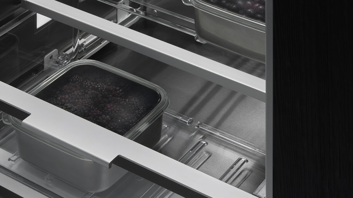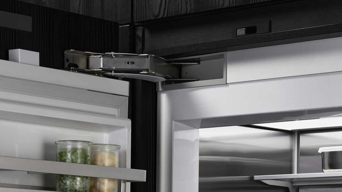 僅有 3 毫米的縫隙,看不到任何鉸鍊或格柵。我們的嵌入式冰箱可以完美地隱藏在櫥櫃後面,為任何廚房佈局帶來低調簡潔的外觀。